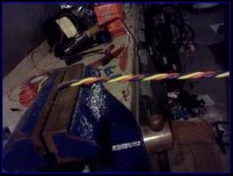 Next the three wires are wrapped in vinyl to seal them from the RF layer: |